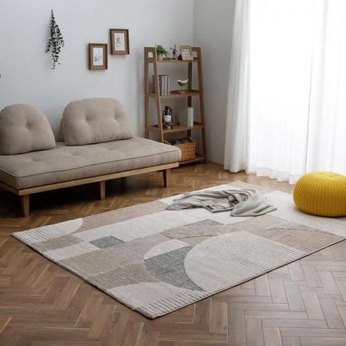 ■ニュアンスカラーでリーフ柄を描いたウィルトンラグ。北欧スタイルなど、色々なテイストに合わせやすいデザインです。